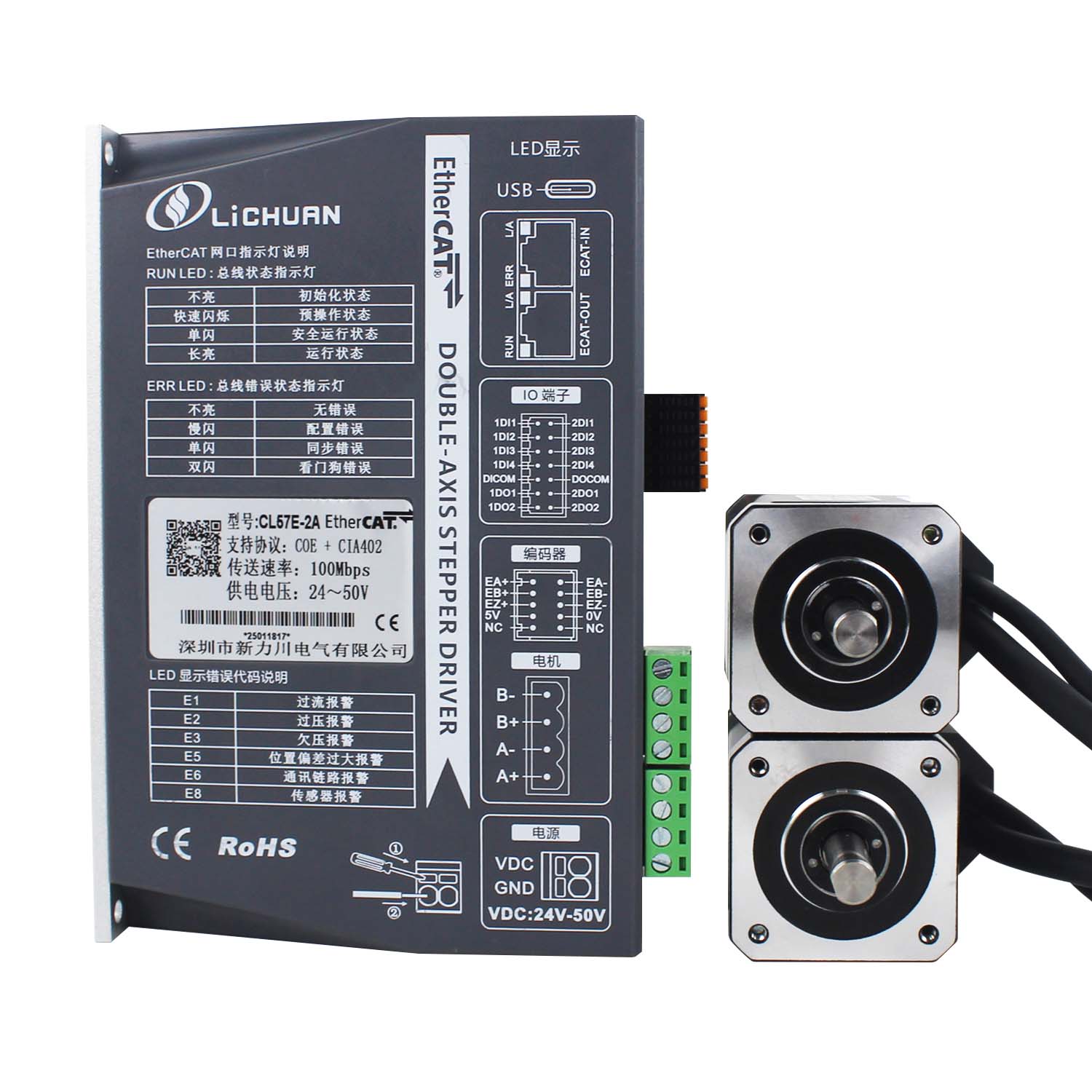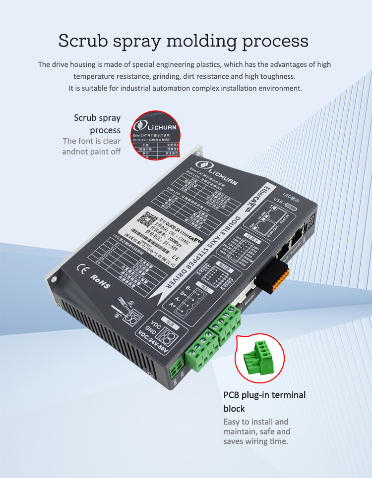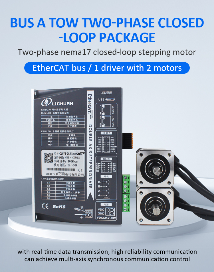 EtherCAT 2Phase Nema24 4-assige DC stappenmotordrivers met gesloten lusNieuwe producten EtherCAT 2Phase Nema17 2-assige DC stappenmotordrivers met gesloten lus gemaakt in China met CE/ROHS van LICHUAN®. Onze fabriek is een beroemde fabrikant en leverancier van EtherCAT 2Phase Nema17 2-assige DC-stappenmotordrivers met gesloten lus in China. Ons product is van hoge kwaliteit/duurzame/stabiele werking en goedkope prijs. En wij leveren maatwerk.