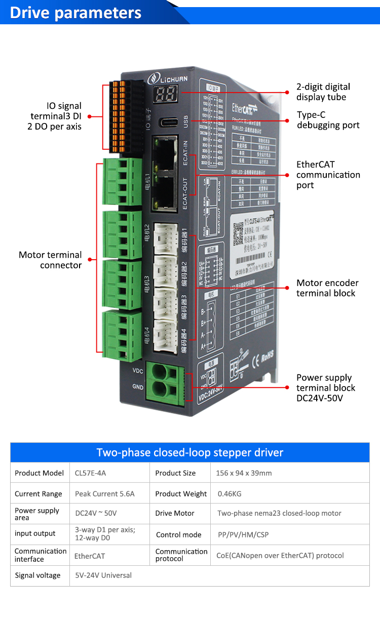 EtherCAT 2Phase Nema24 4-assige DC stappenmotordrivers met gesloten lusNieuwe producten EtherCAT 2Phase Nema23 4-assige DC stappenmotordrivers met gesloten lus gemaakt in China met CE/ROHS van LICHUAN®. Onze fabriek is een beroemde EtherCAT 2Phase Nema23 4-assige DC Closed Loop Stepper Motor Drivers Kit-fabrikanten en leveranciers in China. Ons product is van hoge kwaliteit/duurzame/stabiele werking en goedkope prijs. En wij leveren maatwerk.