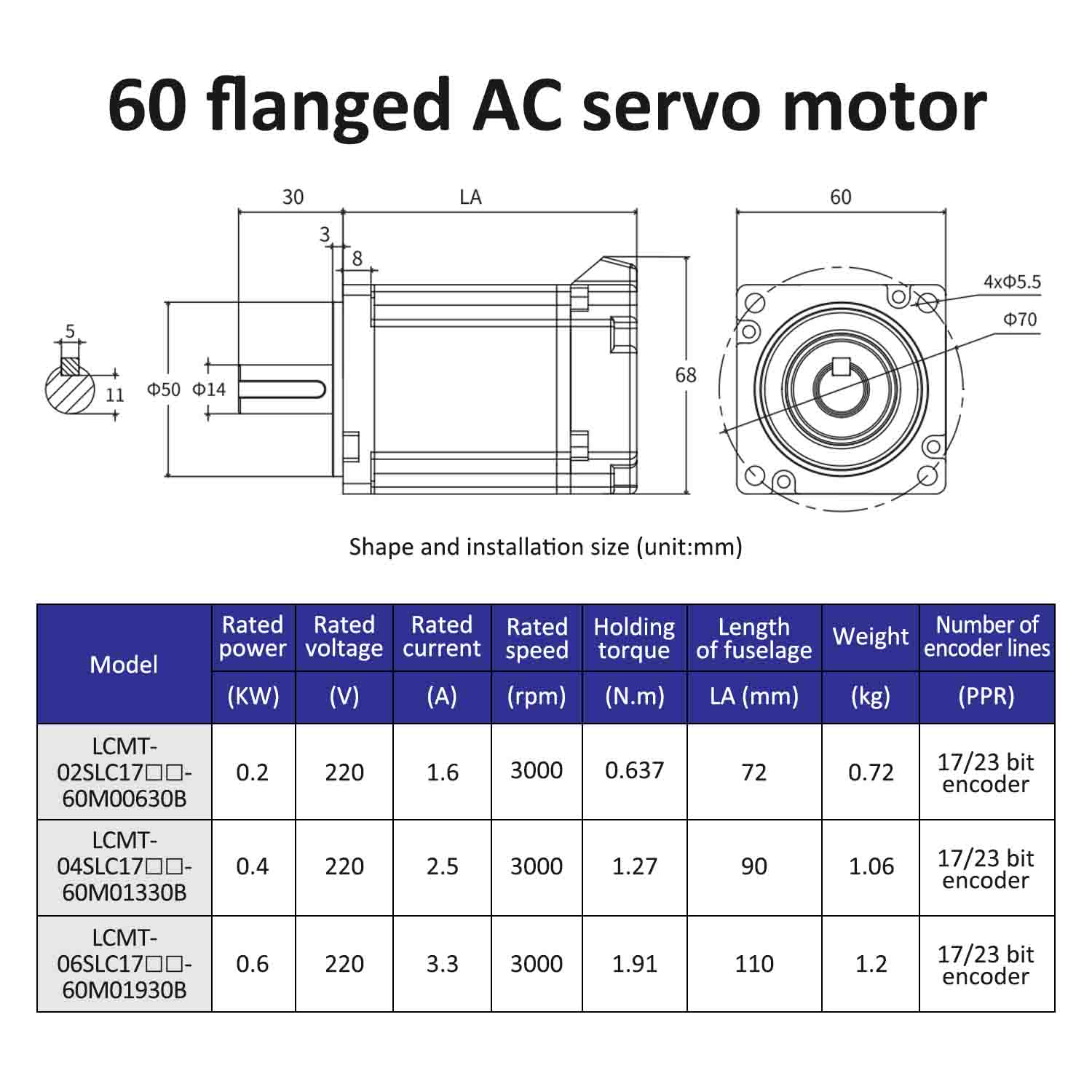 | Motormodel | LCMT-02SLC17-60M00630B | LCMT-04SLC17-60M01330B | LCMT-06SLC17-60M01930B |