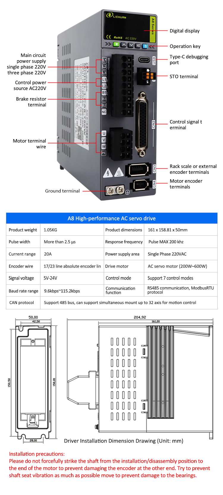 EtherCAT 2Phase Nema24 4-assige DC stappenmotordrivers met gesloten lusNieuwe producten Pulse/RS485 200W/400W/600W 2500/3000 RPM 17/23-bits incrementele/absolute encoder A8 Hoge nauwkeurigheid STO ABZ AC servomotordriversset gemaakt in China met CE/ROHS van LICHUAN®. Onze fabriek is een beroemde Pulse / RS485 200W / 400W / 600W 2500 / 3000RPM A8 Hoge nauwkeurigheid STO ABZ AC Servomotor Drivers Kit-fabrikanten en leveranciers in China. Ons product is van hoge kwaliteit/duurzame/stabiele werking en goedkope prijs. En wij leveren maatwerk.
