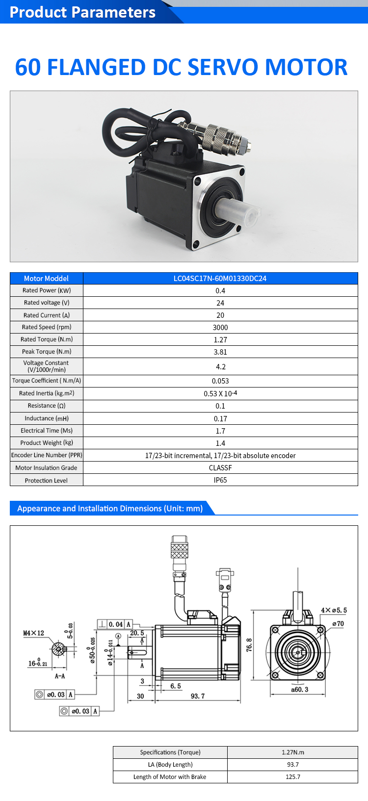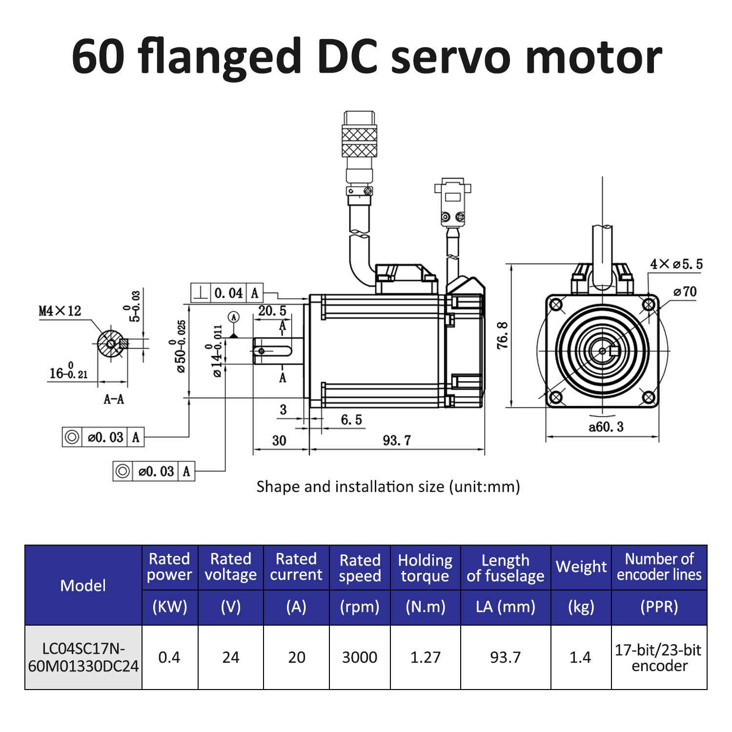 Pulse/RS485/CANopen/EtherCAT 60 FLANGED 200W/400W/600W Laagspanning DC servomotordriverskit